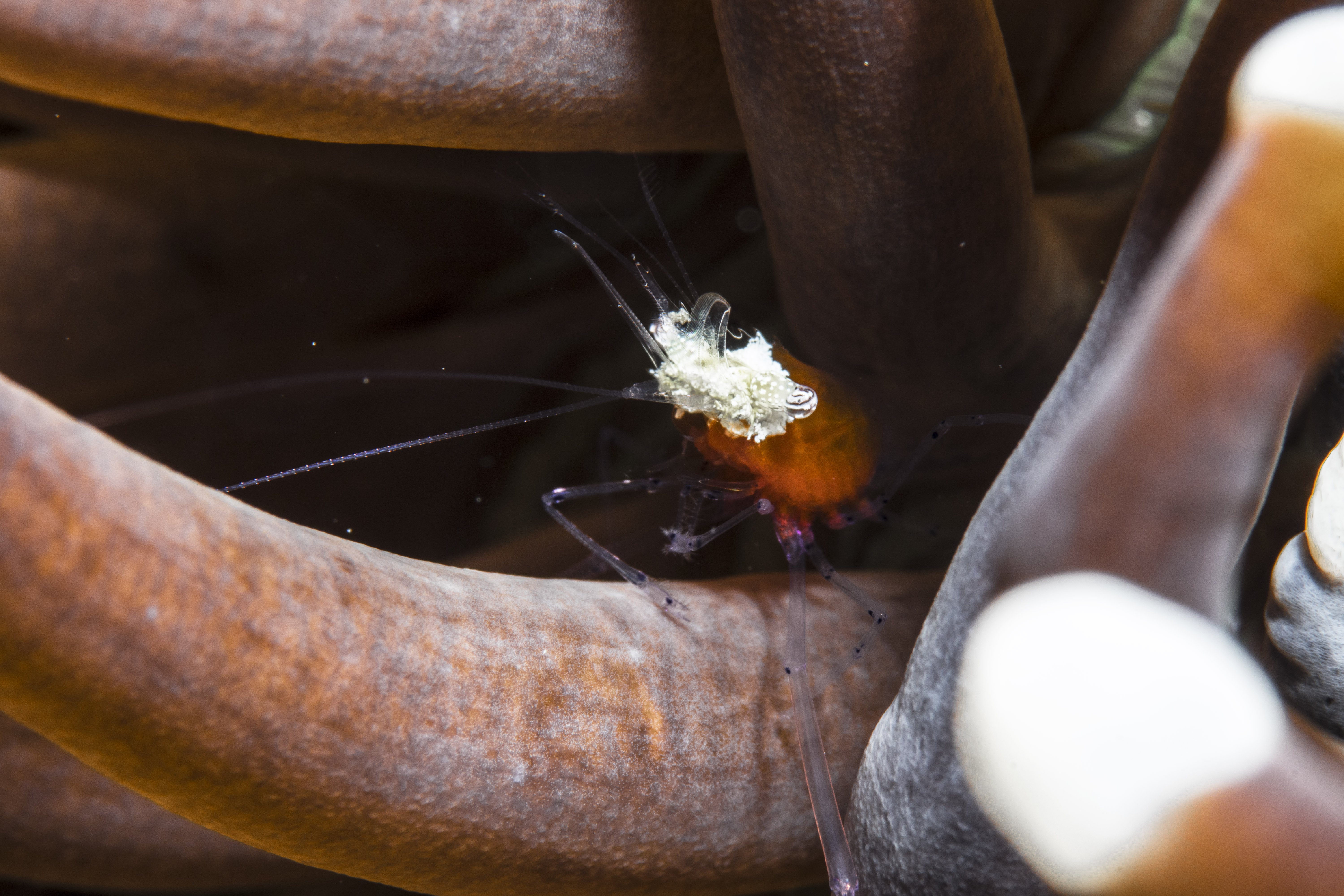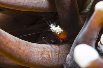 Peacock tail anemone shrimp Periclemenes brevicarpalis