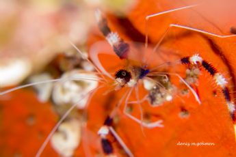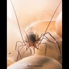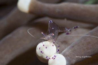 Whip coral shrimp Dasycaris zanzibarica with parasites